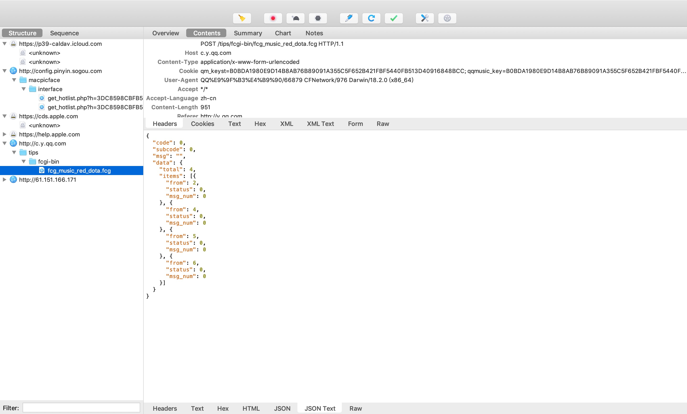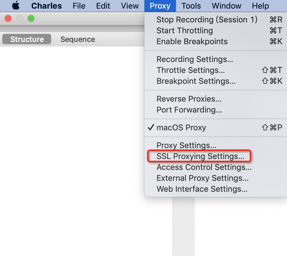 3、打开Proxy ---->点击 maxOS Proxy,即可开始抓浏览器网页请求。