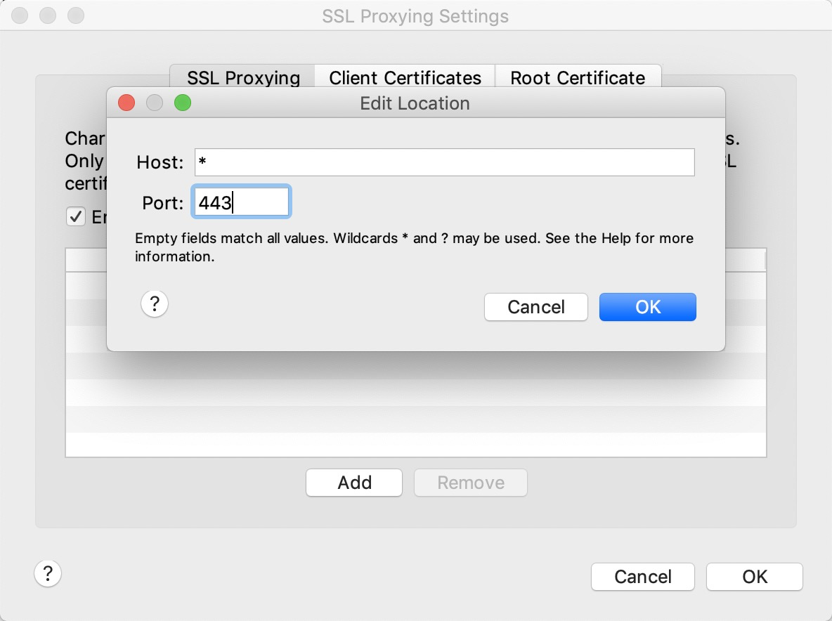 在 Charles 的菜单栏选择 “Proxy”->”Recording Settings”,然后选择 Include 栏,选择添加一个项目,然后填入需要监控的协议,主机地址,端口号。这样就可以只截取目标网站的封包了