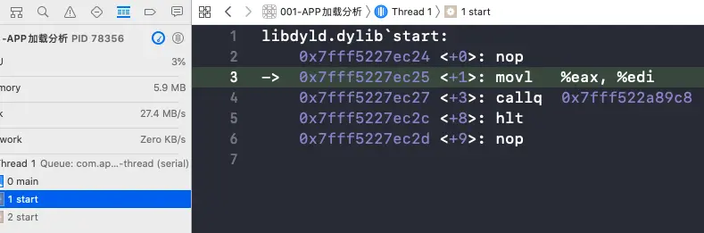 libdyld.dylib`start