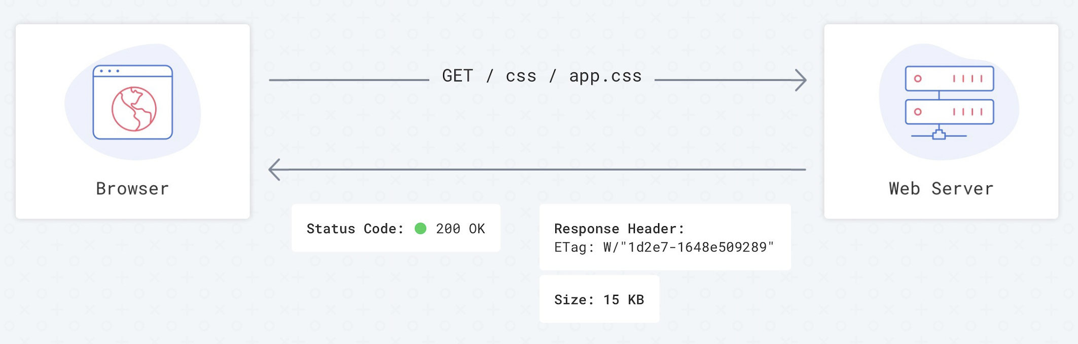 服务器在给浏览器发送资源文件时(例如 css 文件),会对此资源内容计算出一个 hash 值,作为此文件的 tag,一起发送给浏览器。