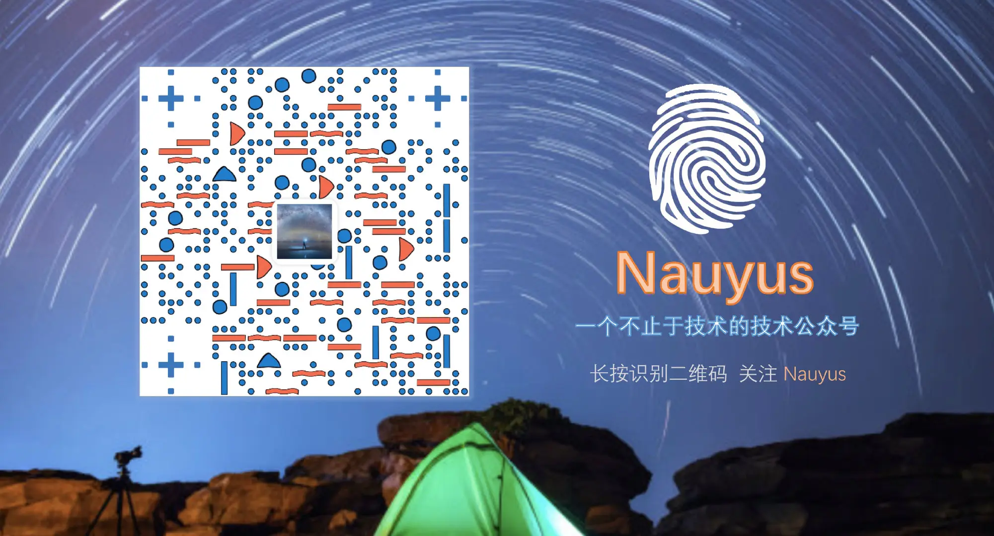 Nauyus,主要分享一些后端开发,微服务,架构设计之类的技术文章,也会发布一些关于思维认知,职业成长等不成熟的想法,看到游记,影评之类的杂文也是有可能的! 2019年12月起开启周更模式,欢迎关注,共同学习成长!