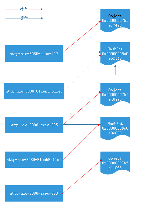 waiting to lock monitor 0x00007f0614018448 (object 0x00000006c0e8e088, a java.util.HashSet),