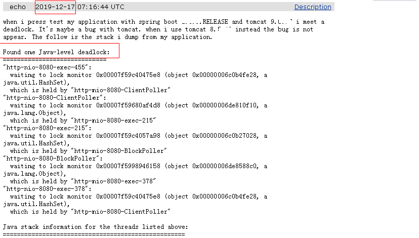 一、Tomcat容器 9.0.26 版本 Deadlock 问题