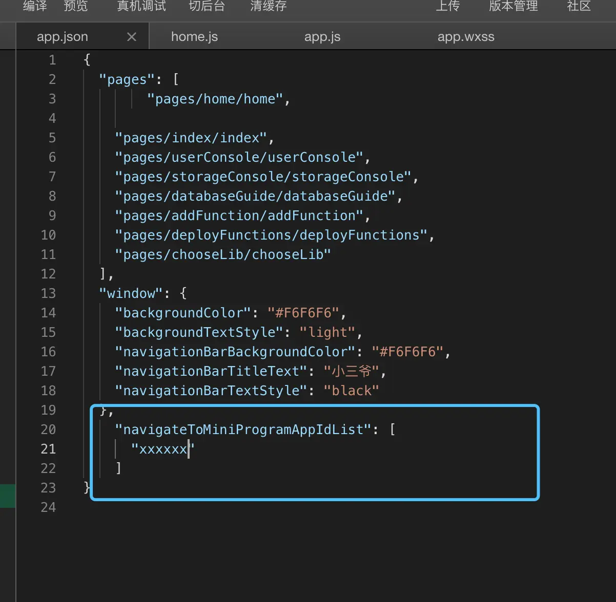 还需要在本小程序app.json里声明要跳转到的小程序的appid