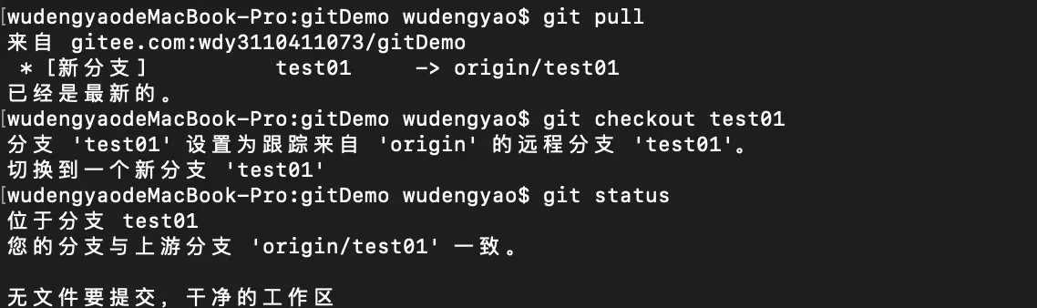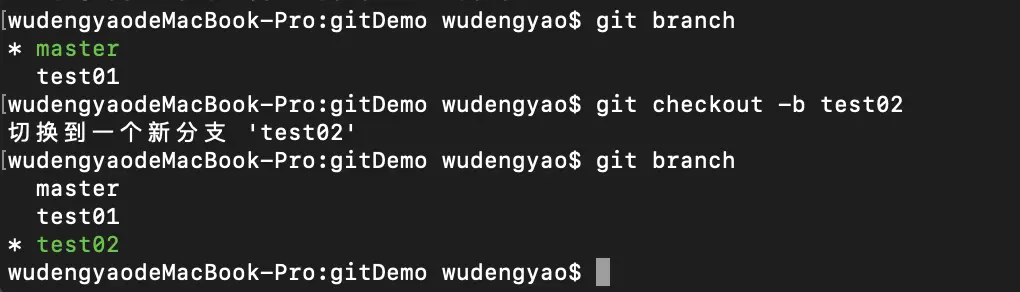 git checkout -b test02 创建test02分支,并切换到test02所在的分支