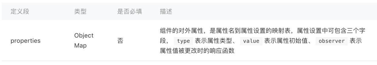 type 表示属性类型、 value 表示属性初始值、 observer 表示属性值被更改时的响应函数。