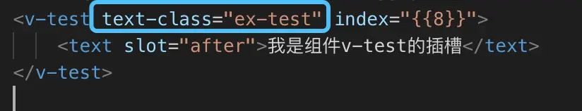 我们新建一个组件v-test,在组件的js代码里定义一个外部样式,名字叫做:test-calss