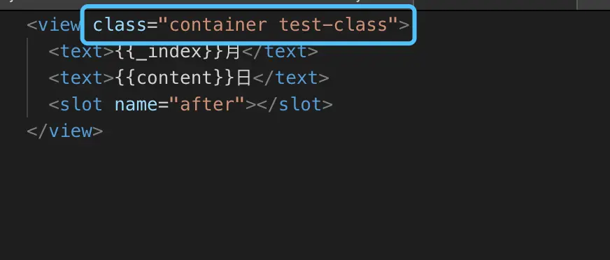 我们在组件里不但定义了外部样式test-calss,还有一个组件本身的普通样式container,