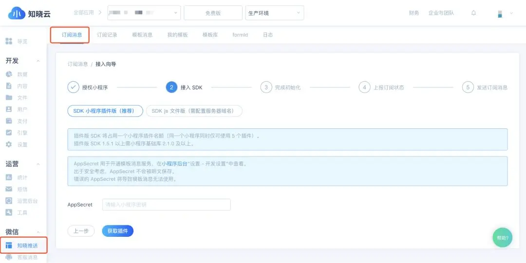 开发者可以在知晓推送页面进入订阅消息接入向导: