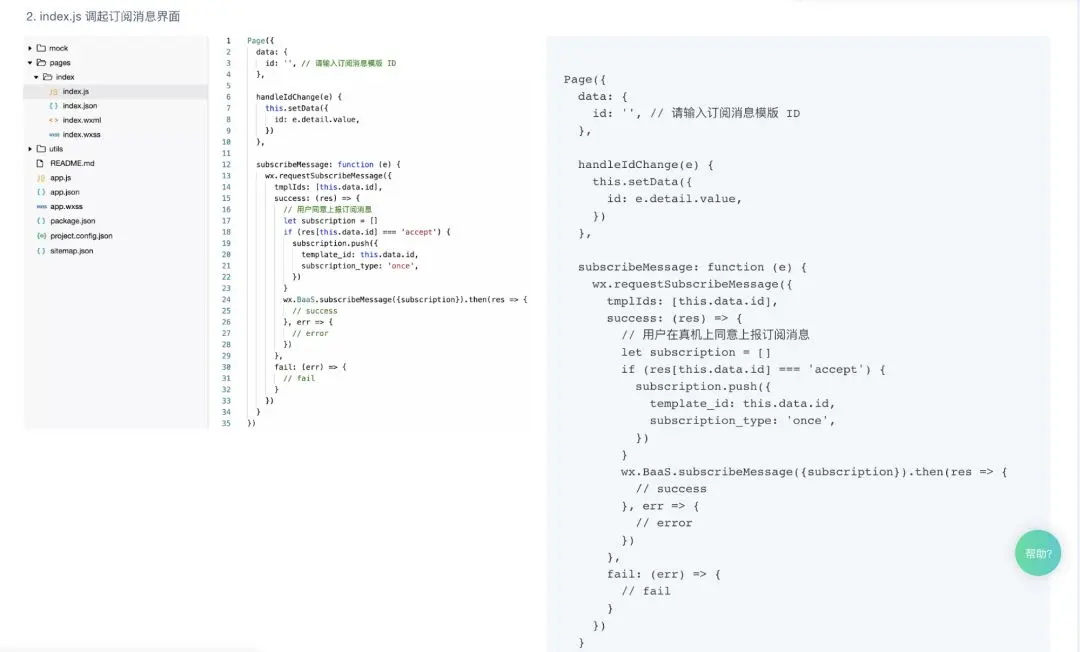 2)在 bindsubmit 事件中增加引导用户订阅的弹窗。例如,使用 wx.showModal(回调函数是 bindtap 事件),通过用户是否确认来调起订阅消息界面,当完成订阅后再完成表单提交。