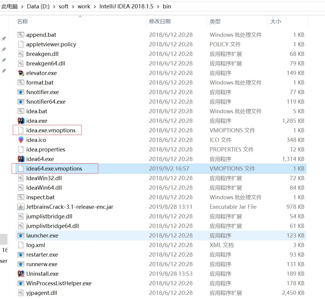 在idea的bin目录下找到如图所示的两个文件