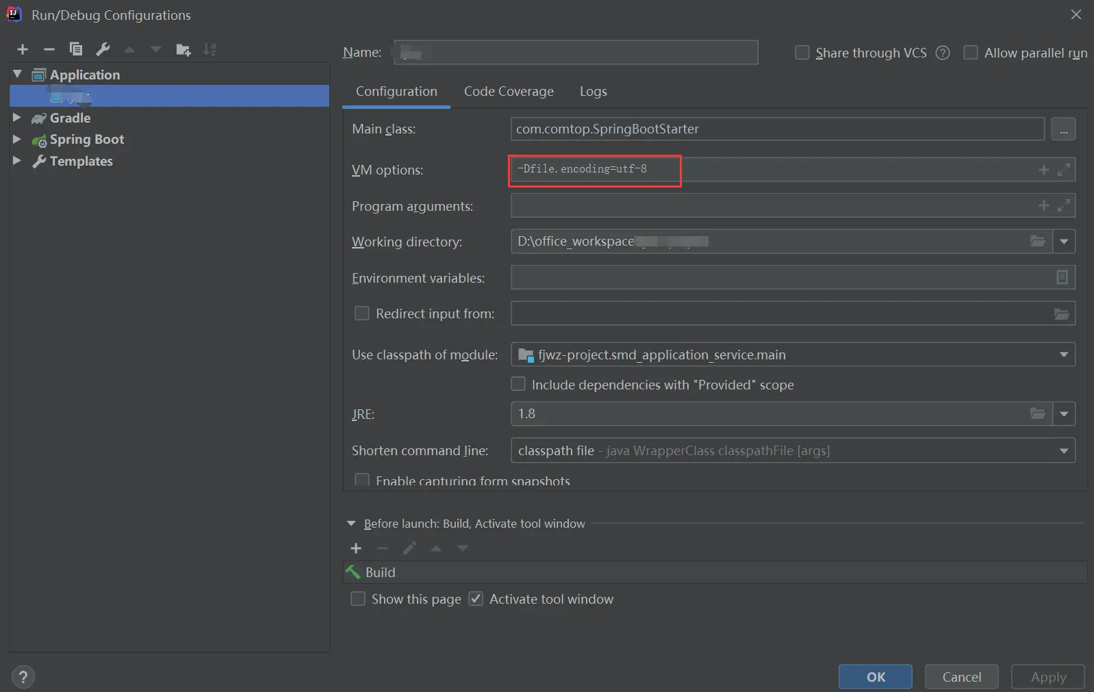 3.设置vm option参数为: -Dfile.encoding=utf-8