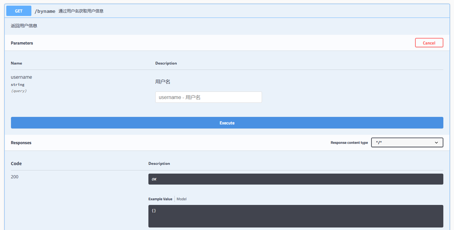 public Object byname(@RequestParam @ApiParam(name="username",value="名字",required = true)String username) {