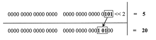 console.log(5 << 2); //返回值20 用算式进行演示,如图所示。