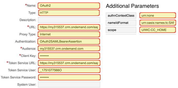 The OAuth 2.0 based authentication between SCP and C4C requires the same user-id to exist in both SAP Cloud Platform and SAP Hybris Cloud for Customer.