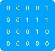则此矩阵连续相邻值为 1 的元素组成的序列和分别为 4, 3,(如图示),可知这个矩阵符合条件的序列和的最大值为 4