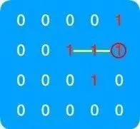 现有一个元素仅为 0,1 的 n 阶矩阵,求连续相邻(水平或垂直,不能有环)值为 1 的元素组成的序列和的最大值。假设有如下矩阵