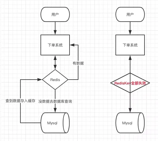 同一时间Redis中的key大面积失效,那一瞬间Redis就和没有一样,那么这个数量级的请求直接请求数据库的话结果几乎是灾难性的。若挂掉的数据库是处理用户服务的,那么其它所有依赖这个库的接口就全部瘫痪了,用户的体验感会急剧下降。