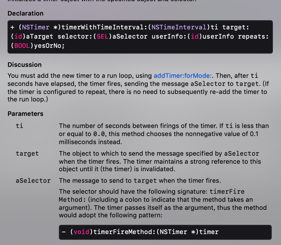 selector:@selector(timerFire) userInfo:nil repeats:YES];