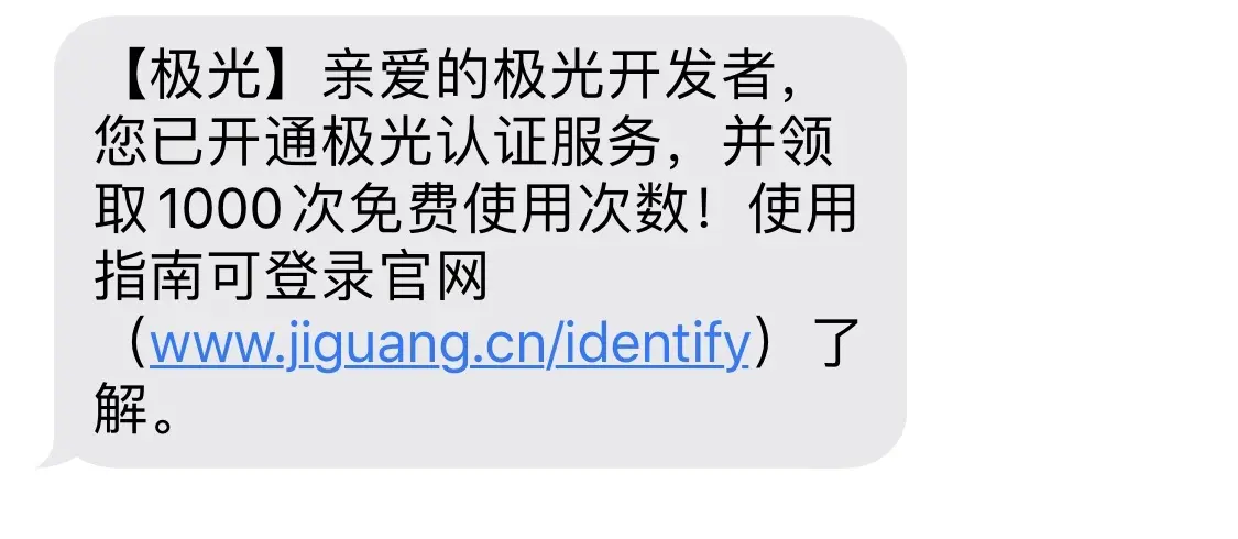 开通「极光认证」,需要先完成实名认证,实名认证后可以领取 1,000 次极光认证礼包。