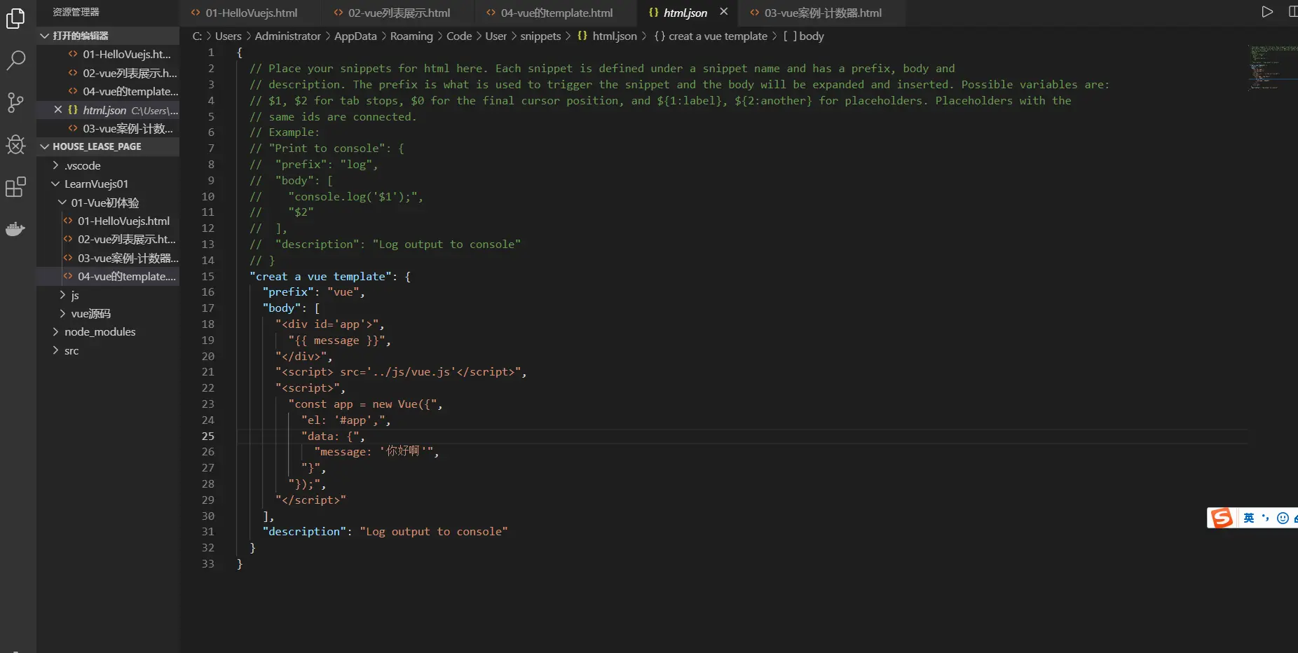 vsCode添加html文件模板代码
