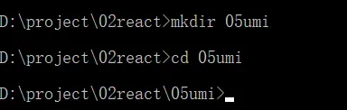 在控制层输入mkdir 05umi , cd 05umi
