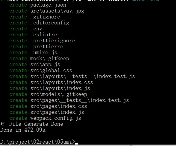 在控制台输入tyarn create umi