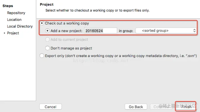 Mac 安装 SmartSVN 小米粒_ 2020-01-14 1,065 阅读1分钟 下载 链接:pan.baidu.com/s/1Q6dlN21B… 密码:r78q 第一次使用,拉取远程项目代码流程如下