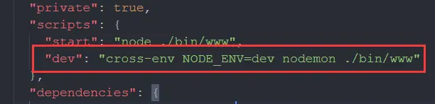 "dev": "cross-env NODE_ENV=dev nodemon ./bin/www"