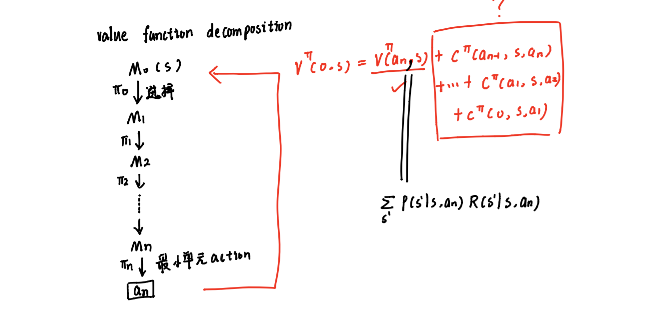 π代表这个option的内部策略,即这个option被选择之后,真正观察到状态s时,mapping到怎样的a。比如上菜的时候,你是先吃碗里的,还是先夹锅里的。