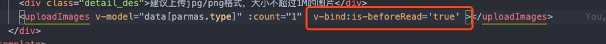 <uploadImages v-model="data[parmas.type]" :count="1" :is-before-read='true' ></uploadImages>