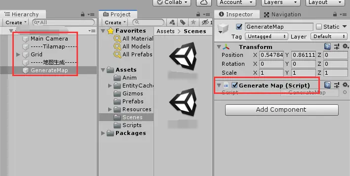 2. 创建一个空物体,用来挂载我们的地图生成脚本。
