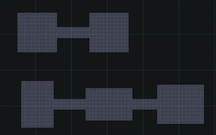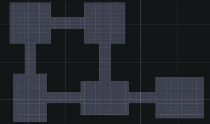 - 走廊连接算是游戏中的一个难点,因为走廊的长度是不确定的要在生成房间后根据房间的位置和大小来确定走廊的生成位置以及长度。