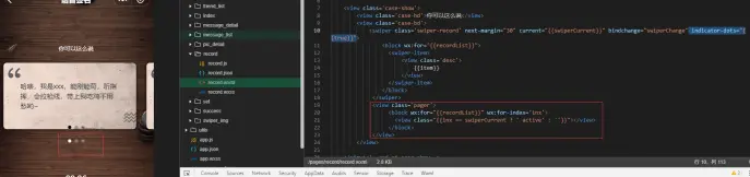 接下来我们只需要移除默认黑色原点即可,设置 swiper indicator-dots=”{false}” .... 即可
