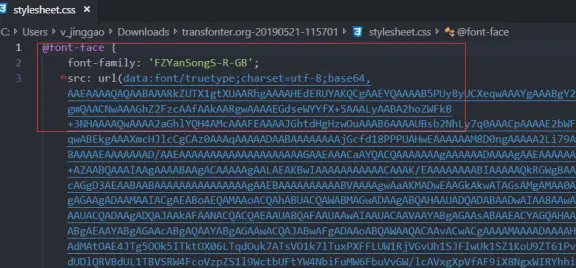 3:下载所需要文件宝拷贝base64字体引用放入样式即可