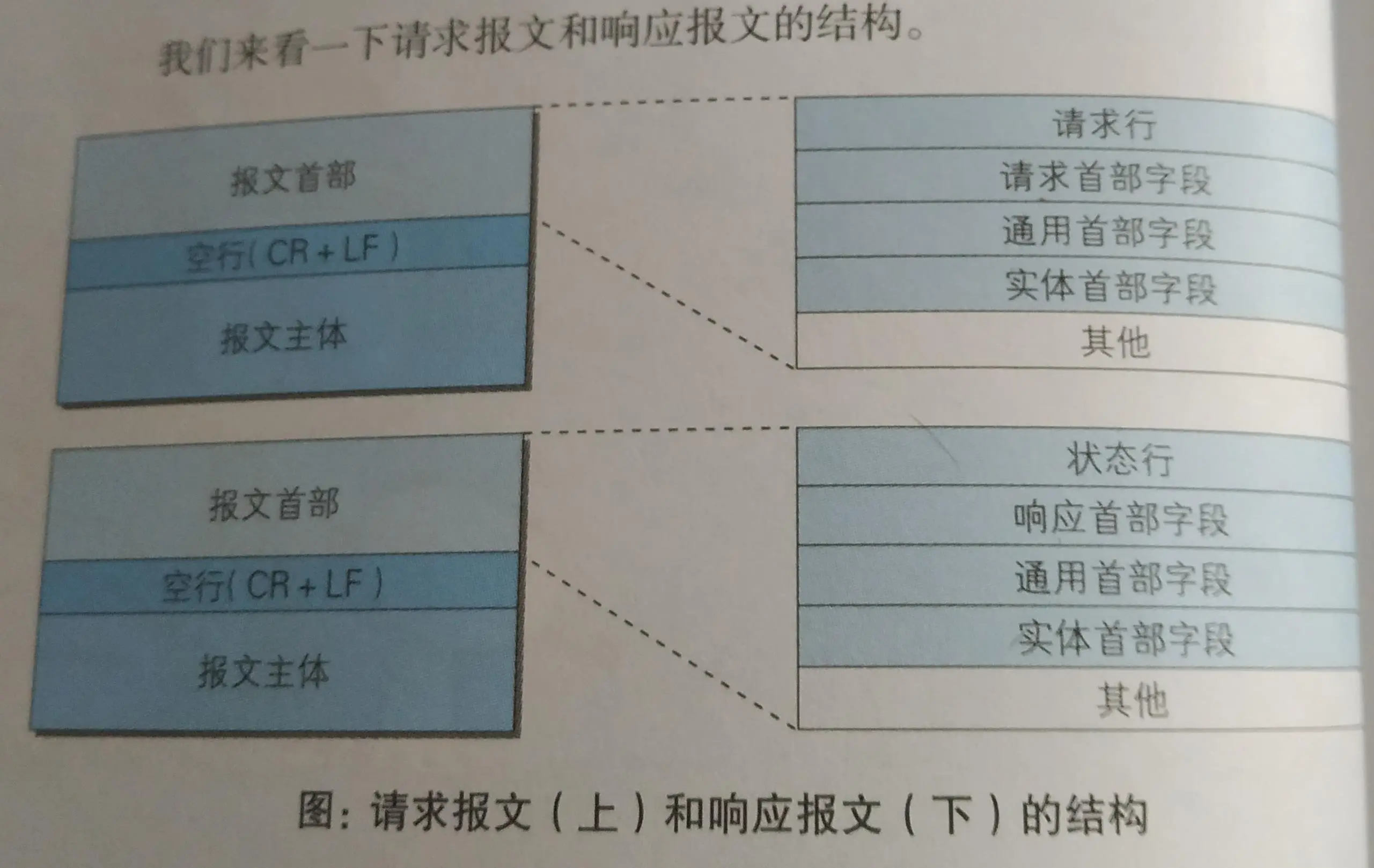 请求报文和响应报文是相互的,理解了其中一种格式另外一种也就好理解了。关于他们的组成有的说是两种,有的是三种,有说四种,其实他的道理都是一样的。