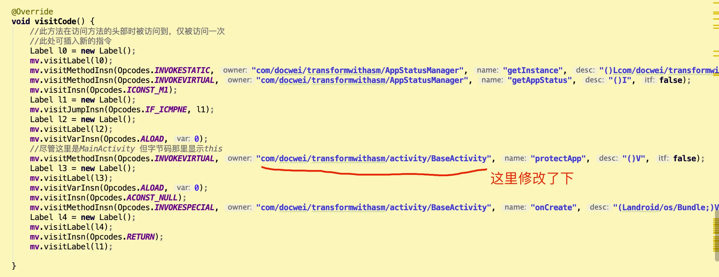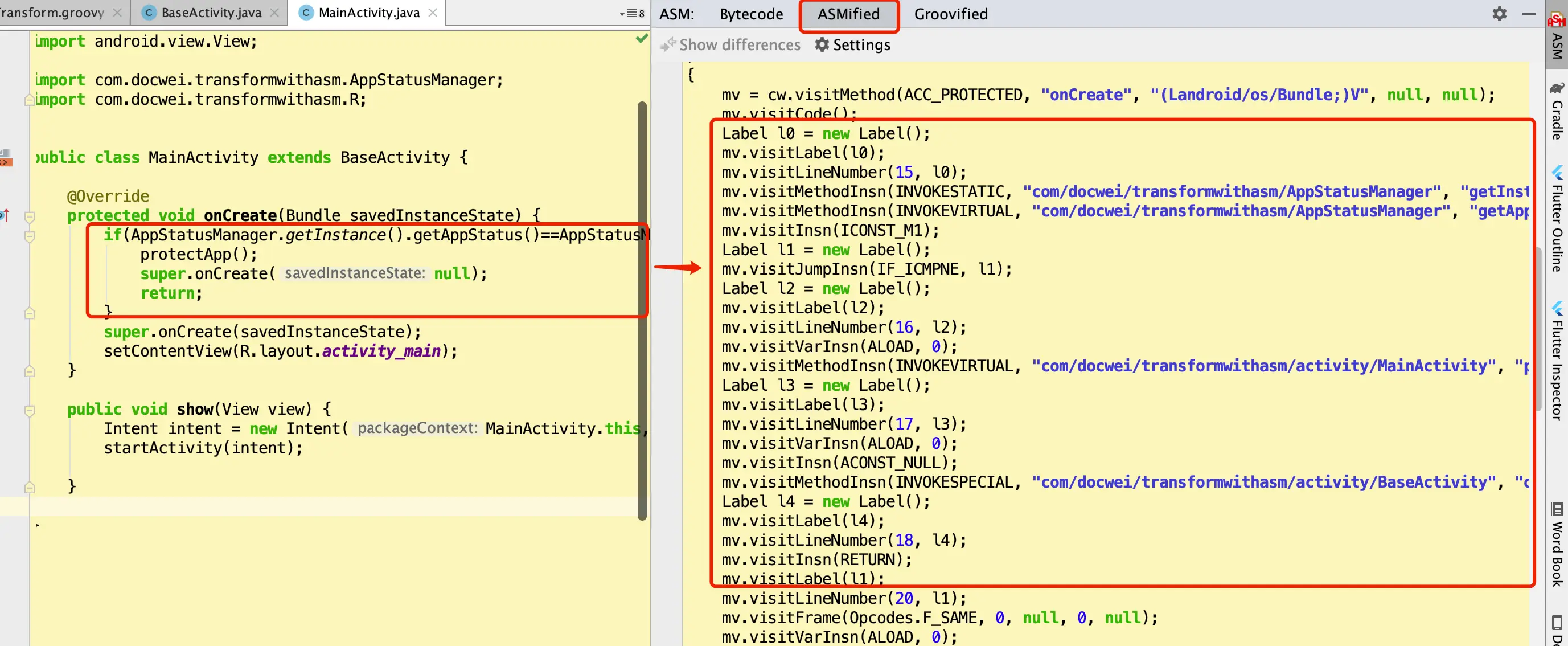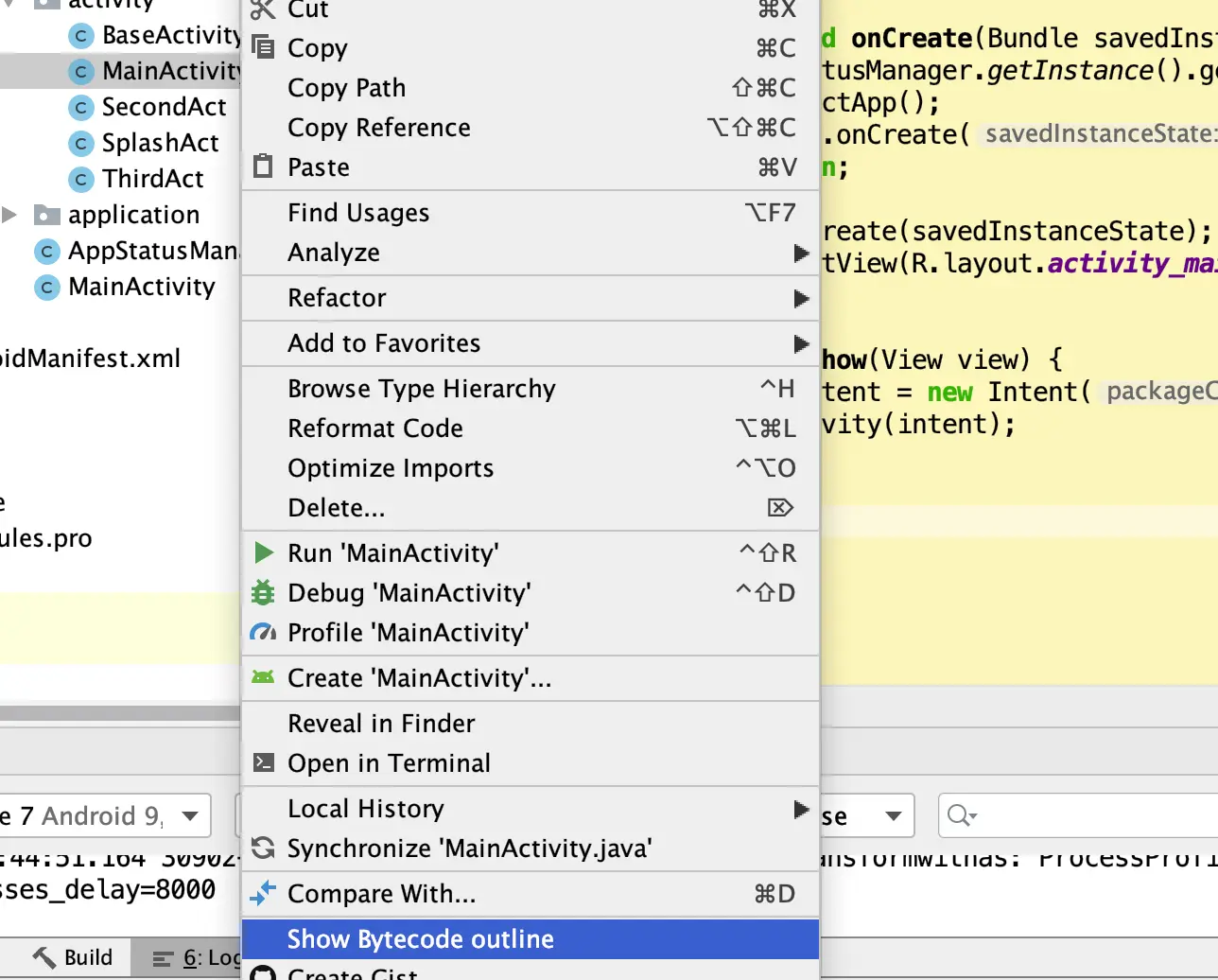 c. 在onCreate方法里面添加ASM字节码操作。