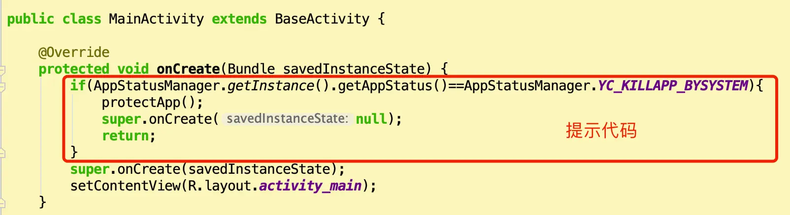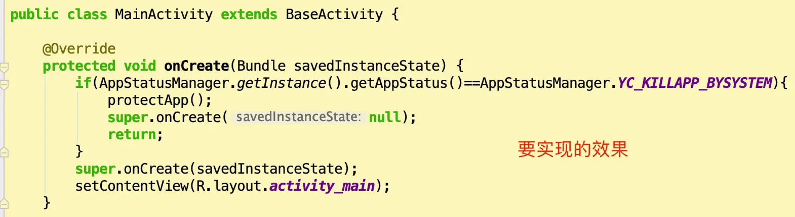 实战:在每一个BaseActivity的子类的onCreate方法开头添加一些判断逻辑。