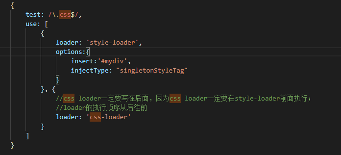 3、两者的顺序很重要,要先经过css-loader处理,再由style-loader处理;