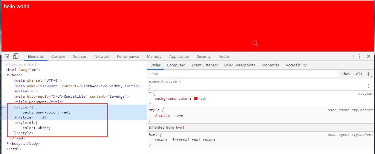 2、style-loader,让css被引入后可以被正确的以一个style标签插入页面;