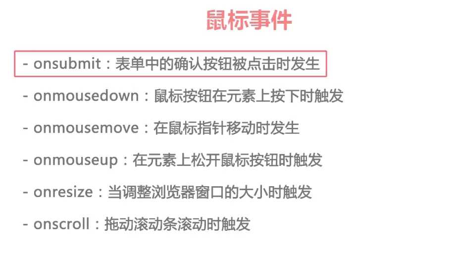 HTML事件绑定时,直接在标签内添加对应的事件即可