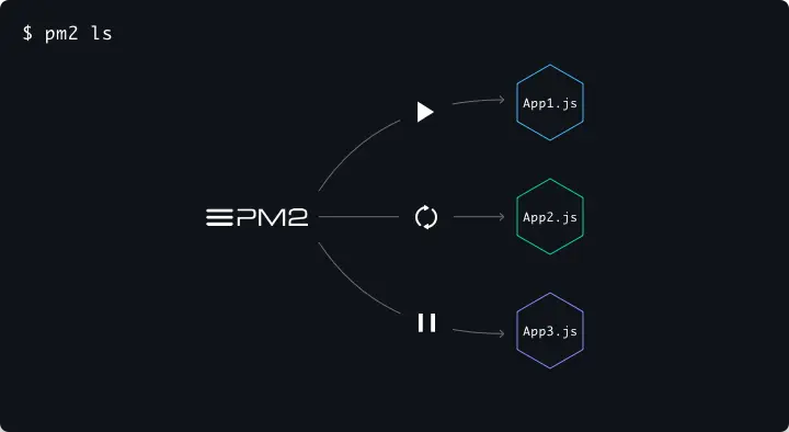 所有这些意味着 PM2 能帮助你保持 Node.js 应用永远运行下去,并在你更新应用或服务器时以 0 故障停机时间自动重启。