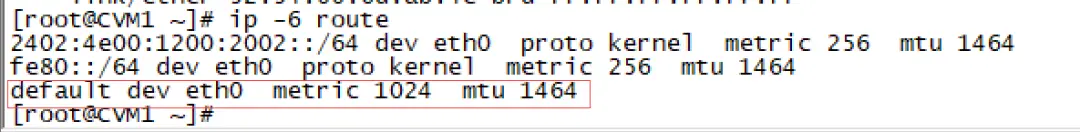 Step4:根据目标IPv6地址和本地网段前缀做对比,发现目标地址不属于本地网段2402:4e00:1200:2002::/64。只能查路由表进行跨网段路由,查找路由表发现没有匹配的明细路由,最终只能选择默认路由::/0进行转发。