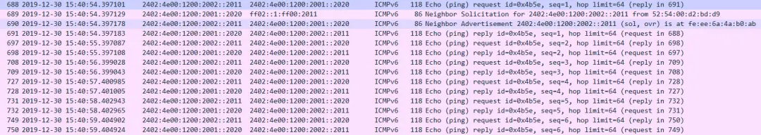 从第一个NS到第一个ICMPv6回应请求的发出顺序如下:(CVM1的网卡抓包)
