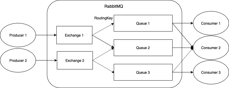 Exchange 根据 RoutingKey 把消息路由至具体 Queue