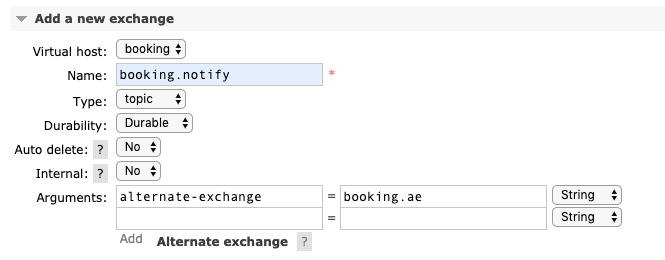 生产者在发送消息的时候如果不设置 mandatory 参数,那么消息在未被路由的情况下将会丢失,如果设置了 mandatory 参数,那么需要添加 ReturnListener 的编程逻辑,生产者的代码将变得复杂化。如果你不想复杂化生产者的编程逻辑,又不想消息丢失,那么可以使用备份交换器,这样可以将未被路由的消息存储在 RabbitMQ 中,再在需要的时候去处理这些消息。 可以通过在声明交换器(调用 channel.exchangeDeclare 方法)的时候添加 alternate-exchange 参数来实现。第二步:RabbitMQ