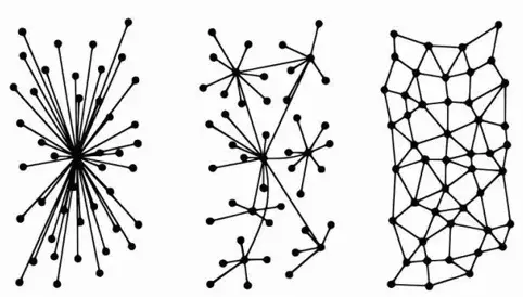 如图有三个网络的拓扑结构图,到底哪个是去中心化的网络?有很多人都讲是第三个,其实第二个才是去中心化的网络。为什么第二个是去中心化的网络?结构到底是怎么产生的?这三个网络到底有哪些差异?