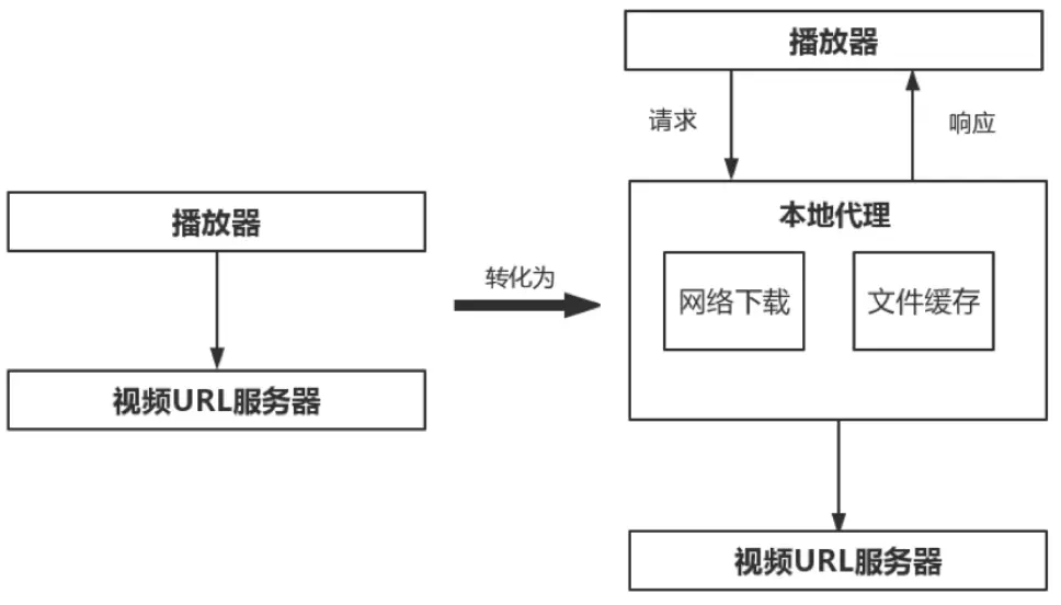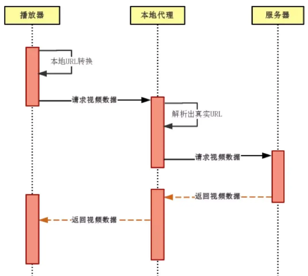 将视频源地址转换成本地代理服务器(127.0.0.1)的地址作为播放器的视频源地址;
