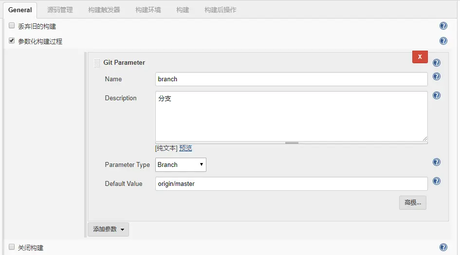 我使用是的git管理代码,如果需要想在构建前自行选择版本分支,可按照如下步骤,否则跳过。 需要安装git parameter 插件。