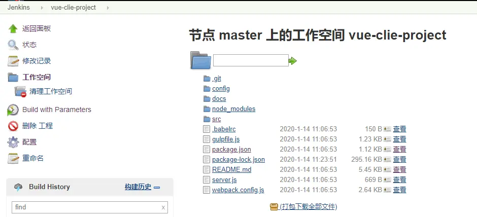 工作空间就可以看到编译生成的文件在dist文件夹下,进入dist后可以选择打包下载全部文件下载编译生成的文件。